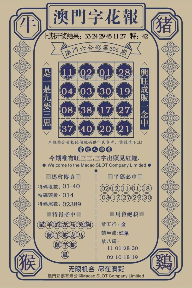 | 306期:九肖【猴兔猪马龙鸡牛羊鼠】开:牛17准 |
